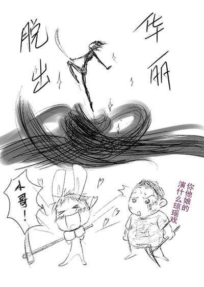 啊这个梗本来只是单纯的天真脑内重口值加大码鄙视一下(神马心态),中间那两格用火柴人略过呢